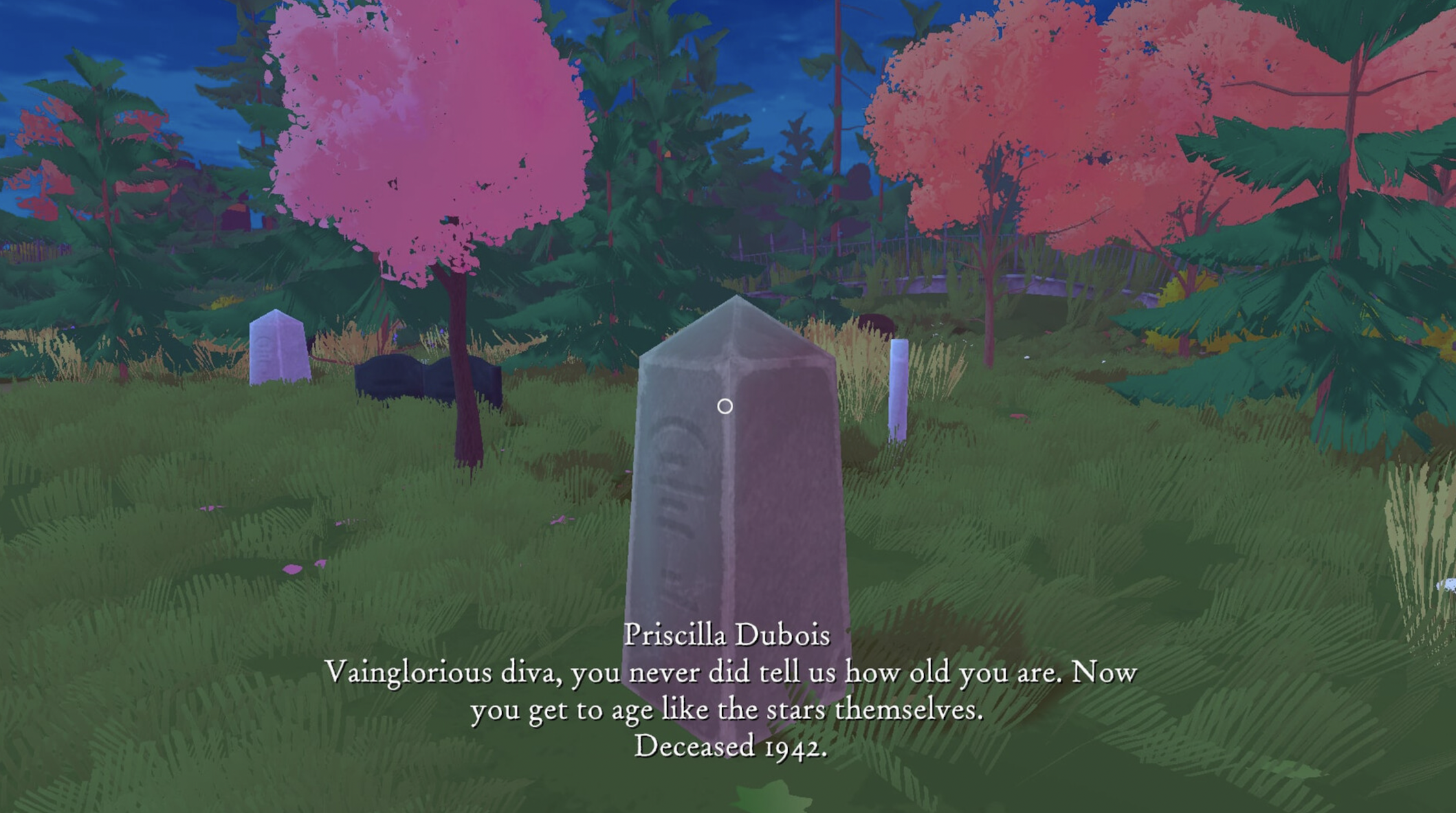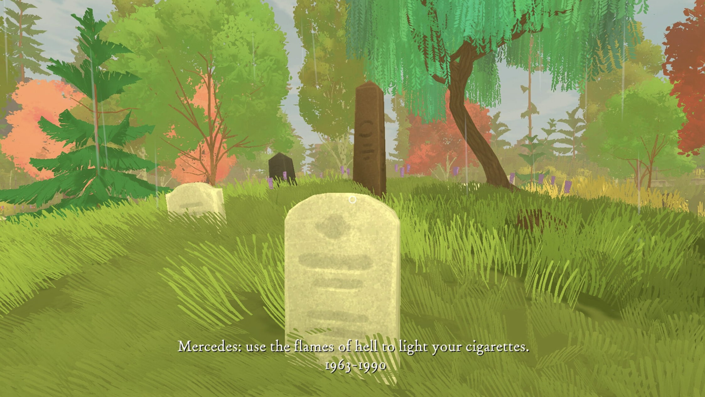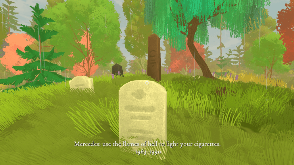 “Seasonala Cemetery offers players to sit, meditate and think. It does not task them with running around searching for clues or engaging in long-winded conversations with NPCs. There is simply you and a graveyard and the stories of those below waiting to be heard.”